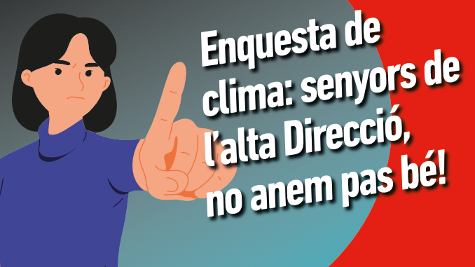 I ara, a sobre, inclouen dins de la retribució variable d’algunes figures una part vinculada a la nota de l’enquesta del clima. Per tant, arribem a la perversió més gran possible: condicionar l’opinió, tant si la valoració t’impacta directament com si ho fa al teu cap, només serveix per a falsificar els resultats de l’enquesta anterior, que no els han agradat i ni tan sols han publicat.